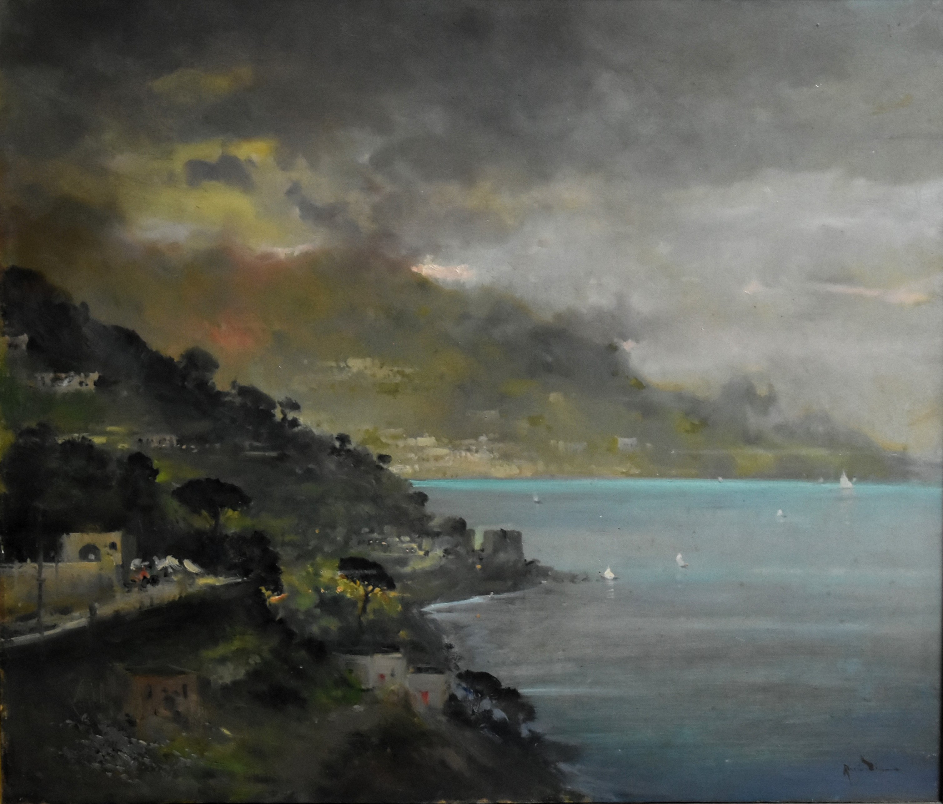 Napoli 1907 – San Sebastiano al Vesuvio 1981 Da Villa Cimbrione – Ravello Olio su tavola (cm 43 x 37)