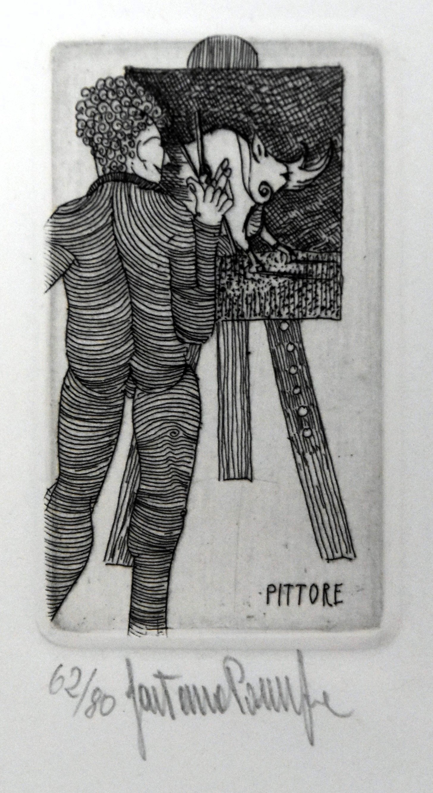 Forenza 1933 – Orbetello 1998 12 Congetture sull’attività dell’uomo, 12/12/1977 – 9 di 12 Pittore Incisione su carta (misure foglio cm 27 x 19 – inciso mm 65 x 35) 62/80
