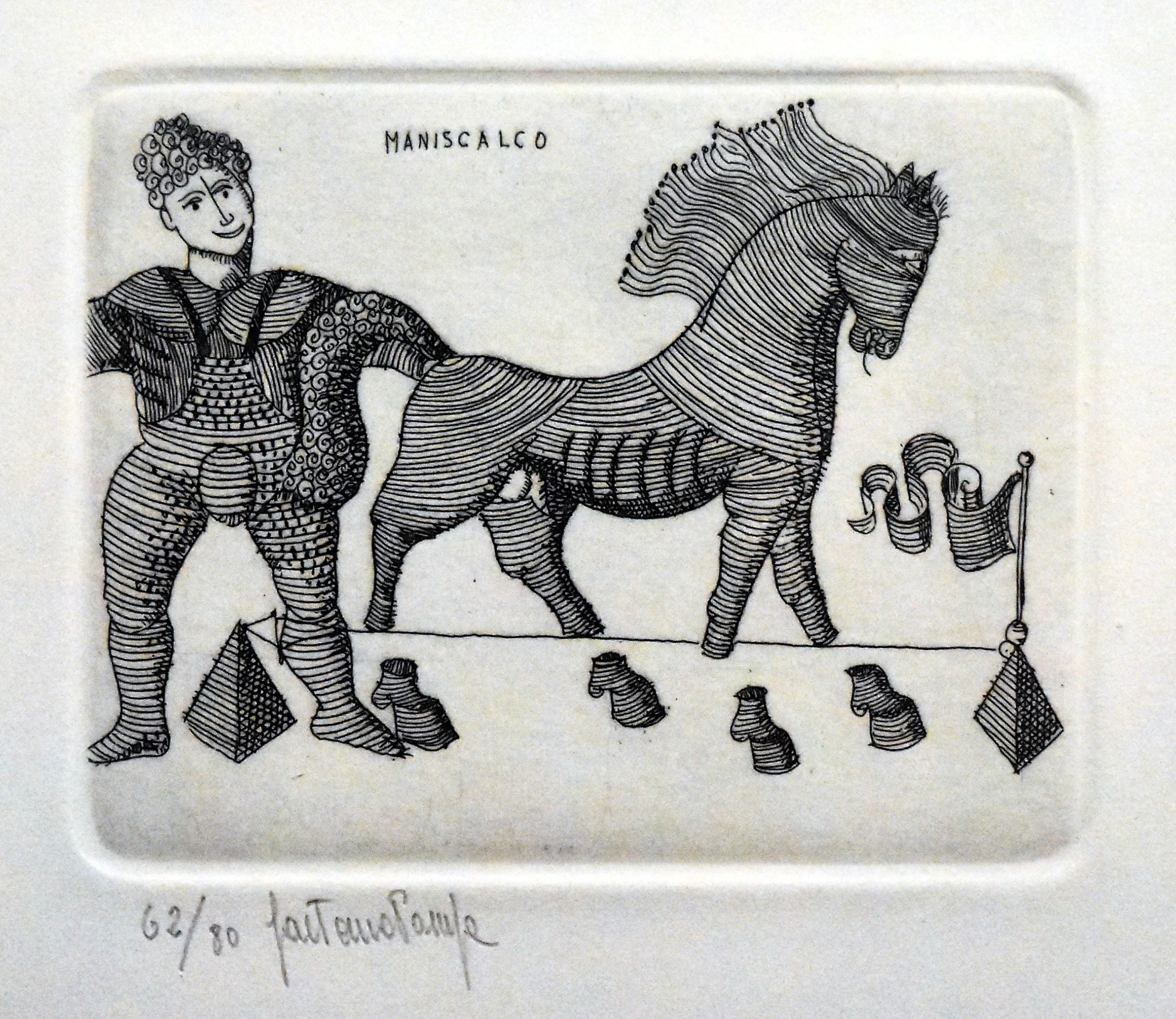 Forenza 1933 – Orbetello 1998 12 Congetture sull’attività dell’uomo, 12/12/1977 – 10 di 12 Maniscalco Incisione su carta (misure foglio cm 27 x 19 – inciso cm 6,5 x 8) 62/80