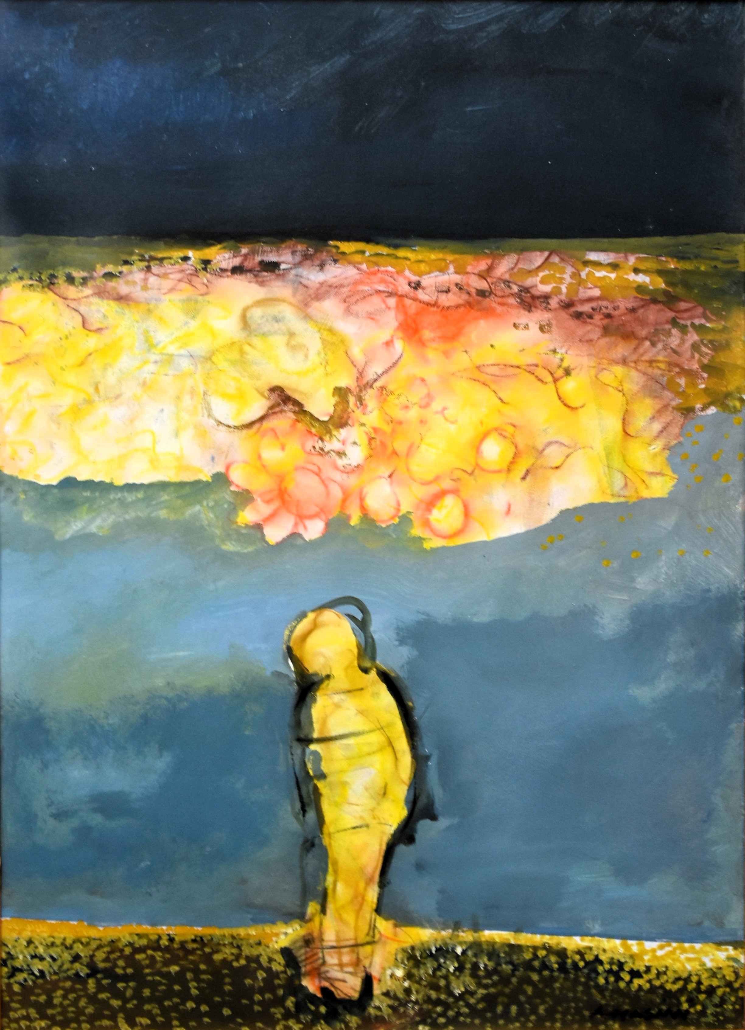 Matera 1932 – 1996 Il cacciatore pentito Olio e tecnica mista su carta (mm 700 x 500)